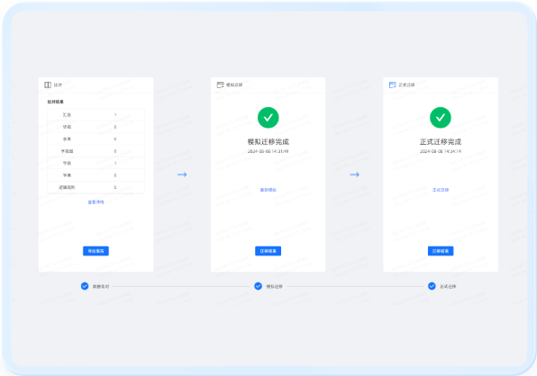 提供模拟遷移演練模式,保障數(shù)據遷移質量,有(yǒu)效降低(dλ✔←≤ī)遷移風(fēng)險。